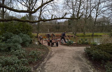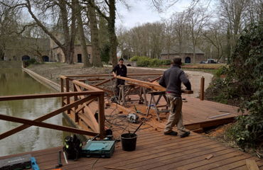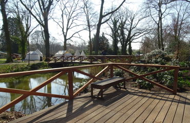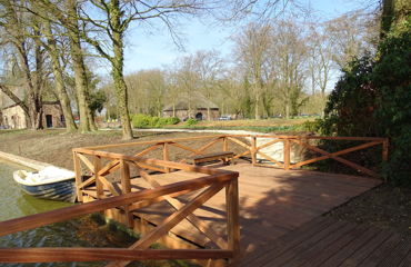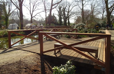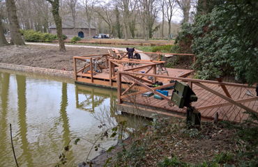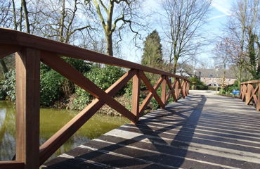 In maart '16 zijn wij werkzaam geweest bij de 'Kasteeltuinen Arcen'. Er werd een brugleuning geheel vernieuwd en bij twee vlonders werden de balustrades vervangen. De onderdelen werden geconstrueerd naar bestaand model. Tevens werd een nieuwe vlonder gebouwd, compleet met balklaag, geprofileerde dekdelen en een balustrade met poorten. De diverse onderdelen werden vervaardigd in voornamelijk 2de hands azobé, herzaagd uit oude meerpalen.