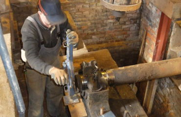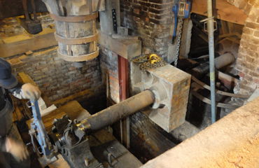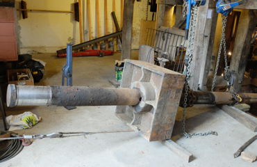 Forse slijtage in de babbitt lageringen en wateras maakte het voor Wittemer molen noodzakelijk om deze onderdelen te demonteren voor revisie. Een ingrijpende klus doordat de ruimte voor demontage en montage zeer beperkt was. De babitt lageringen werden gerestaureerd, en de loopvlakken in de as werden afgedraaid.